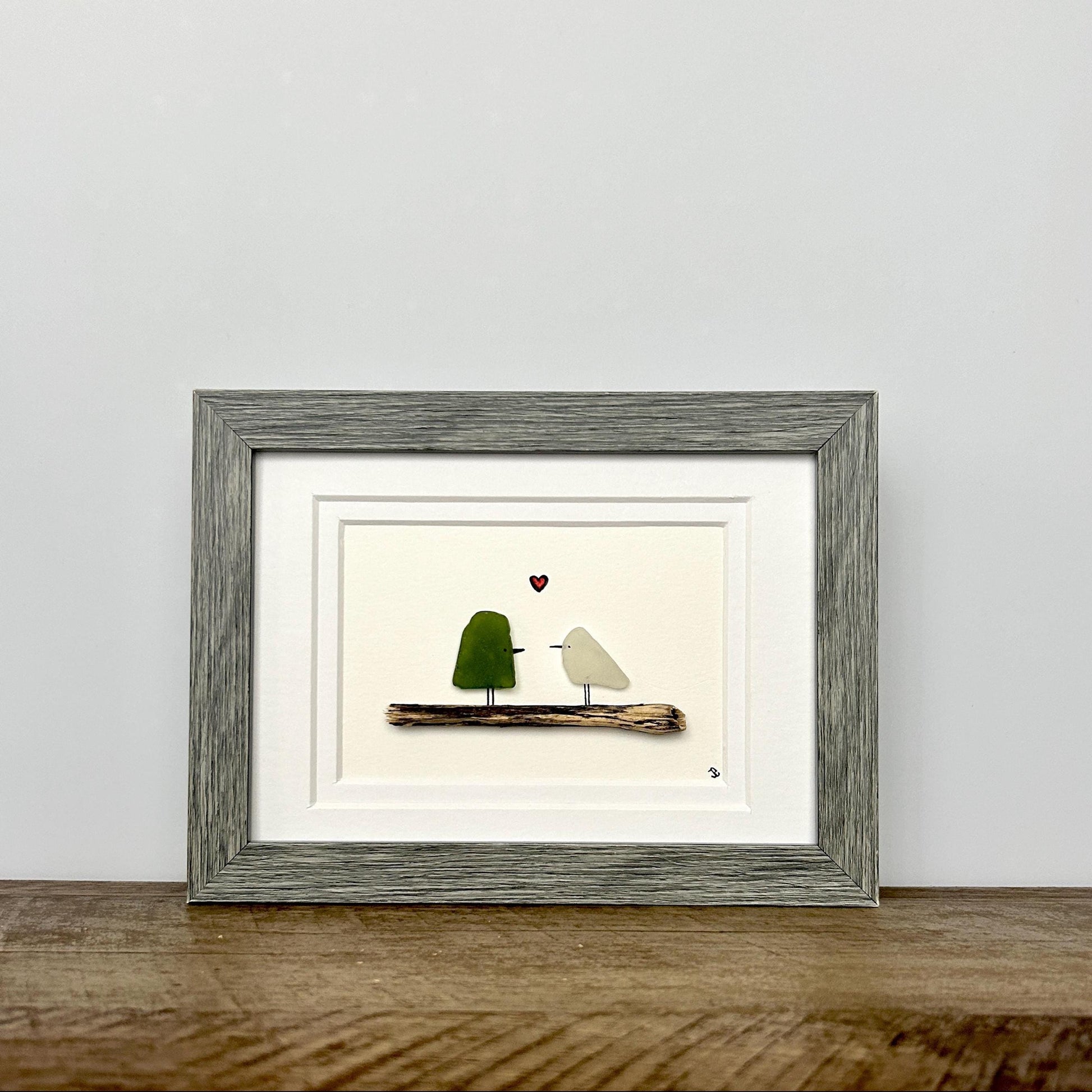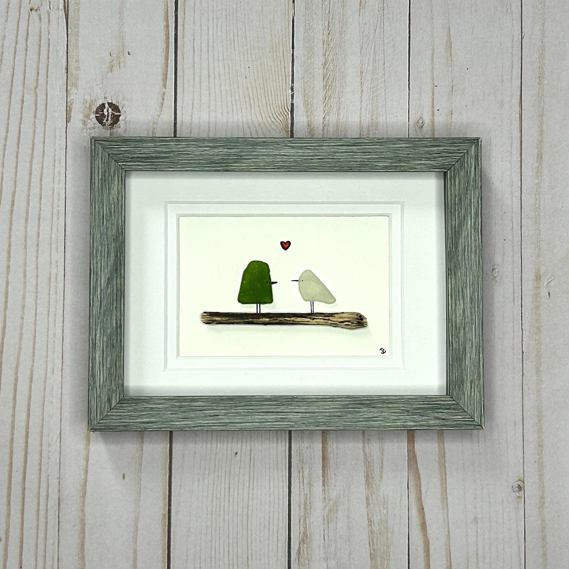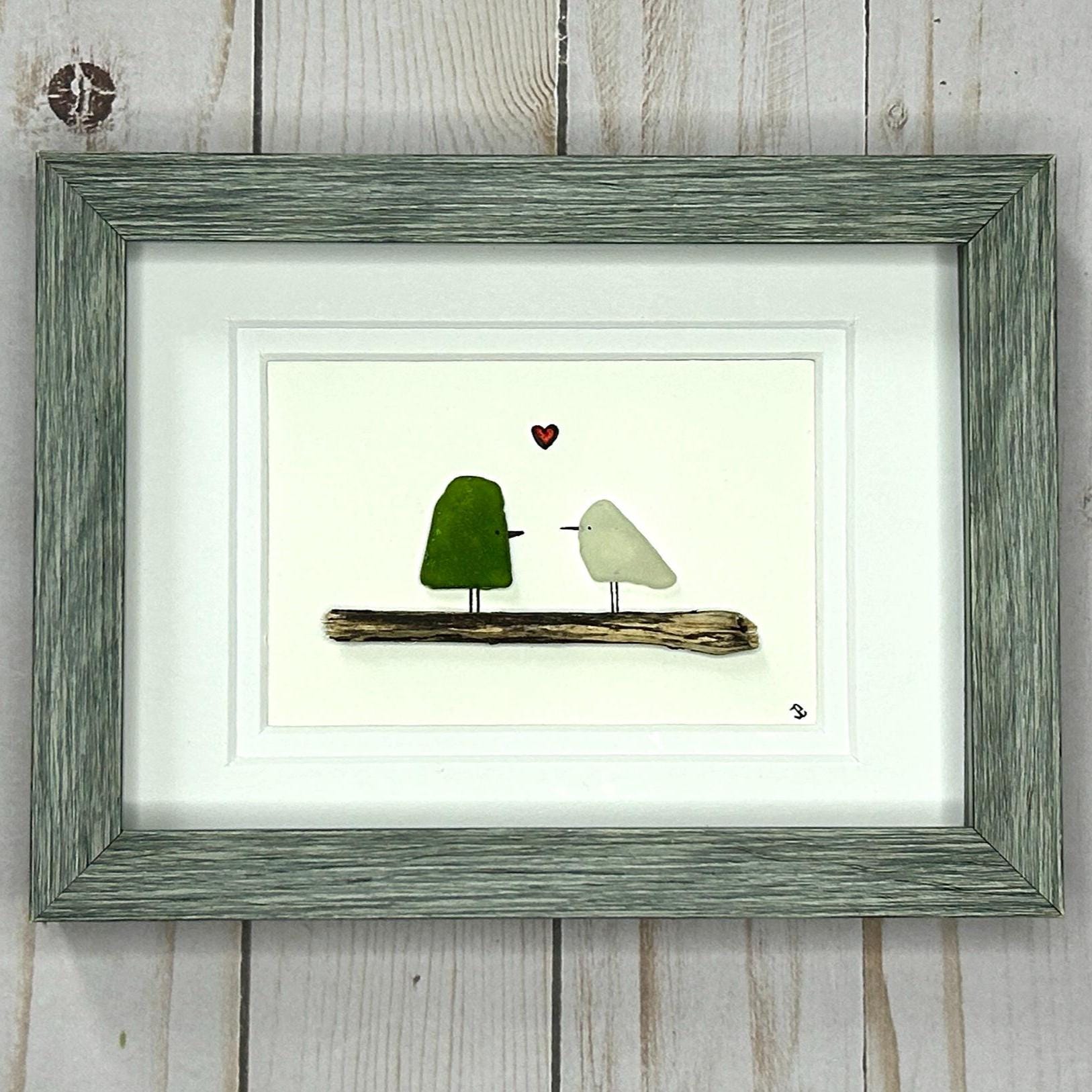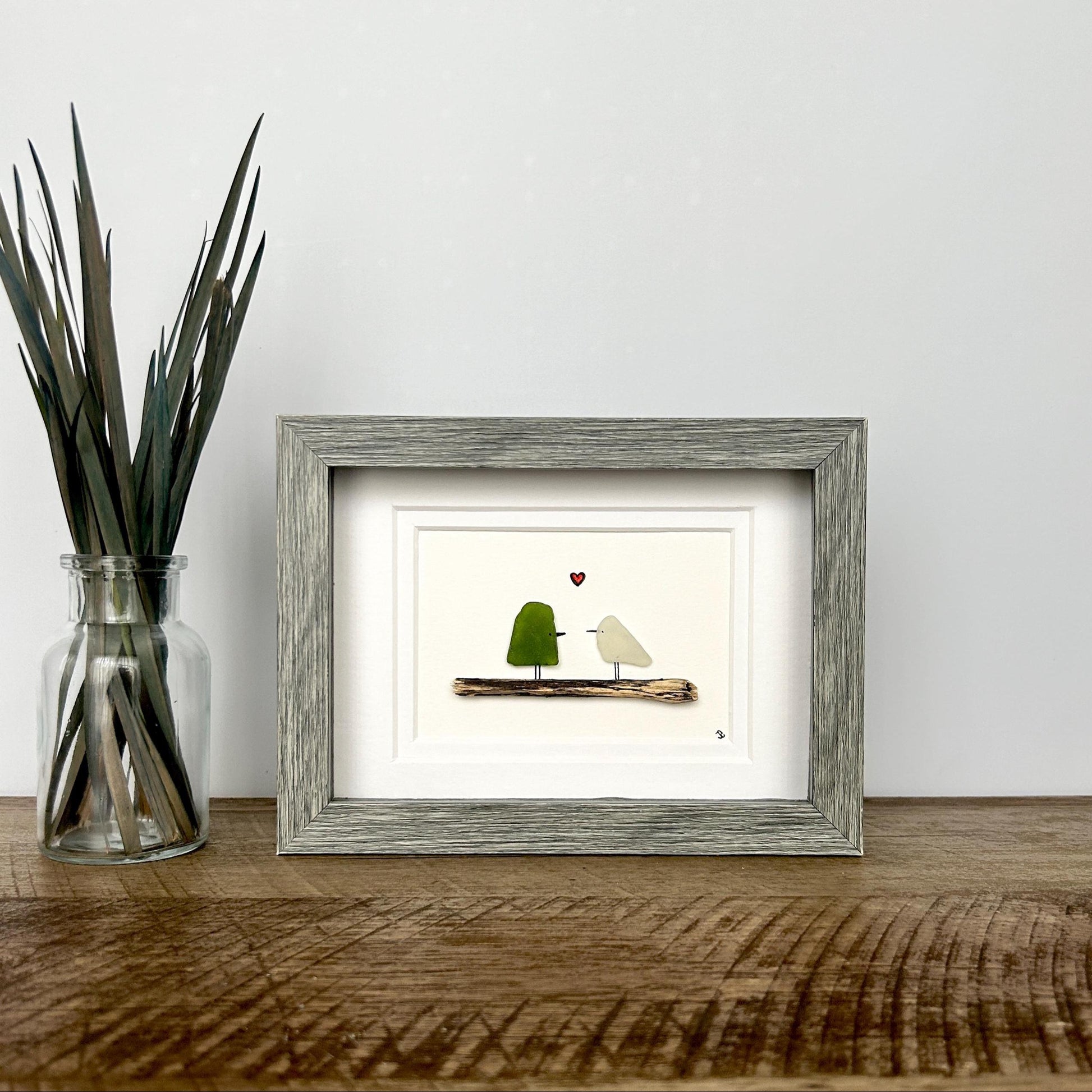 Sea Glass Love Birds - Framed Shadowbox Artwork - 5x7